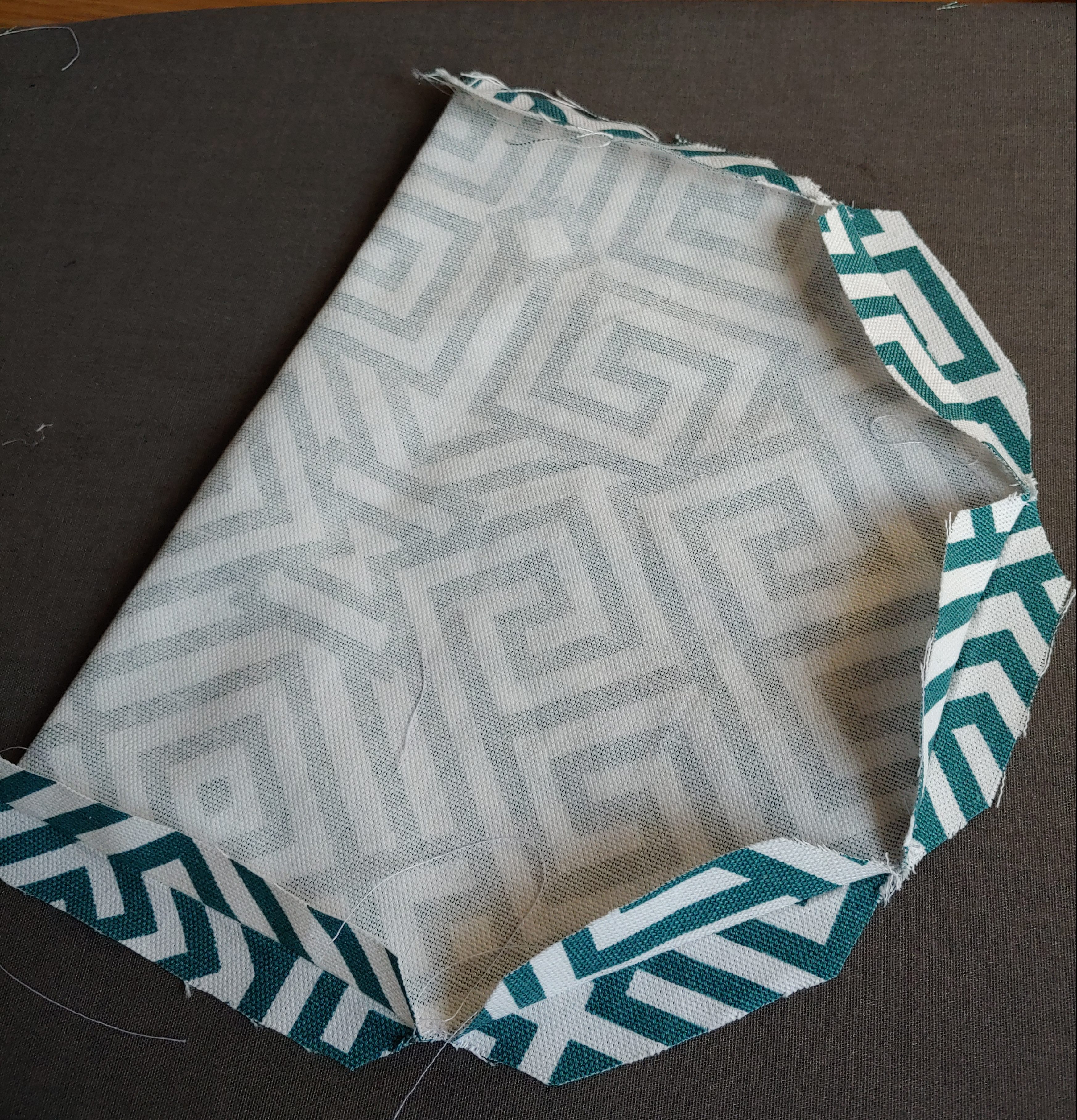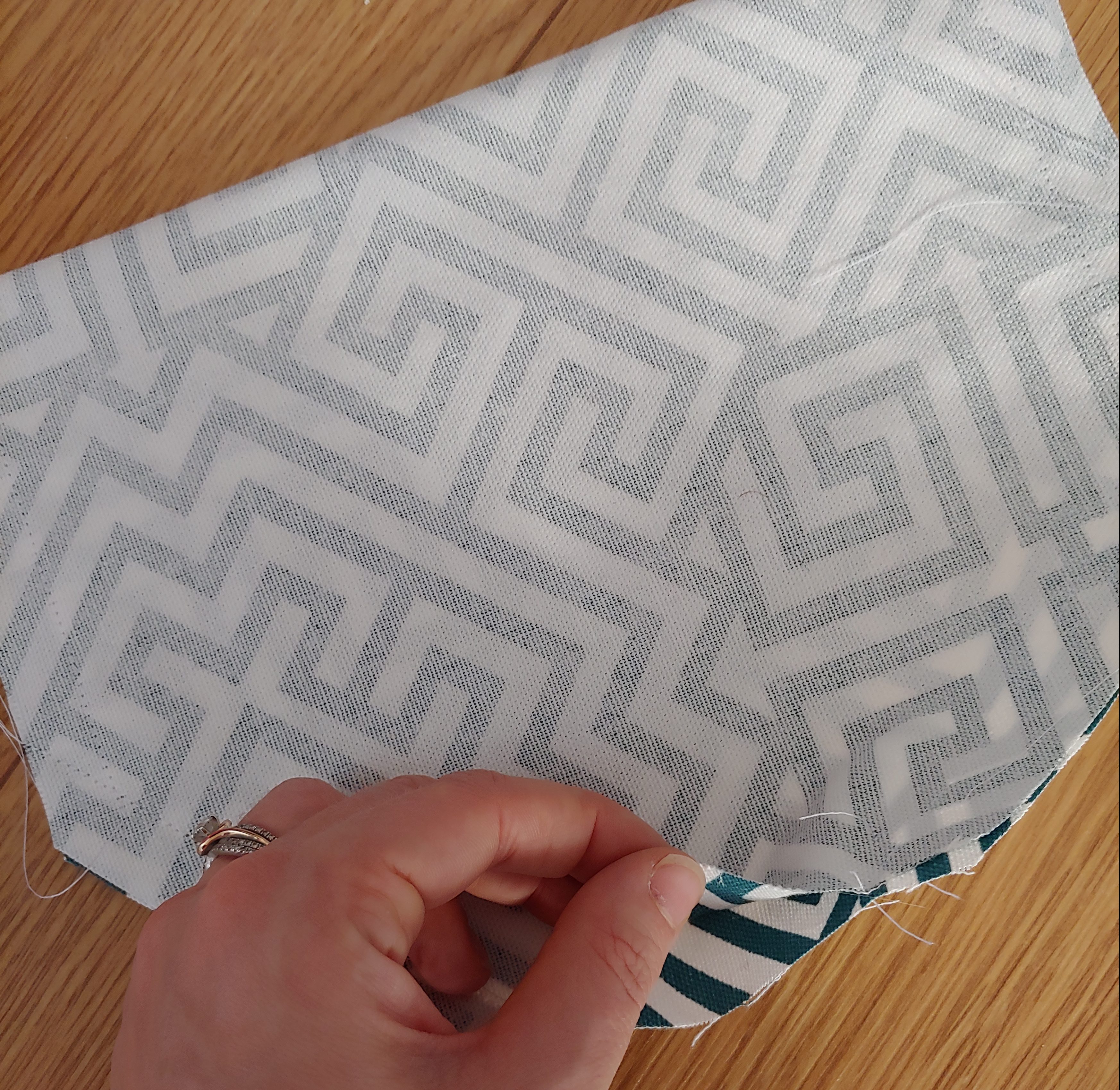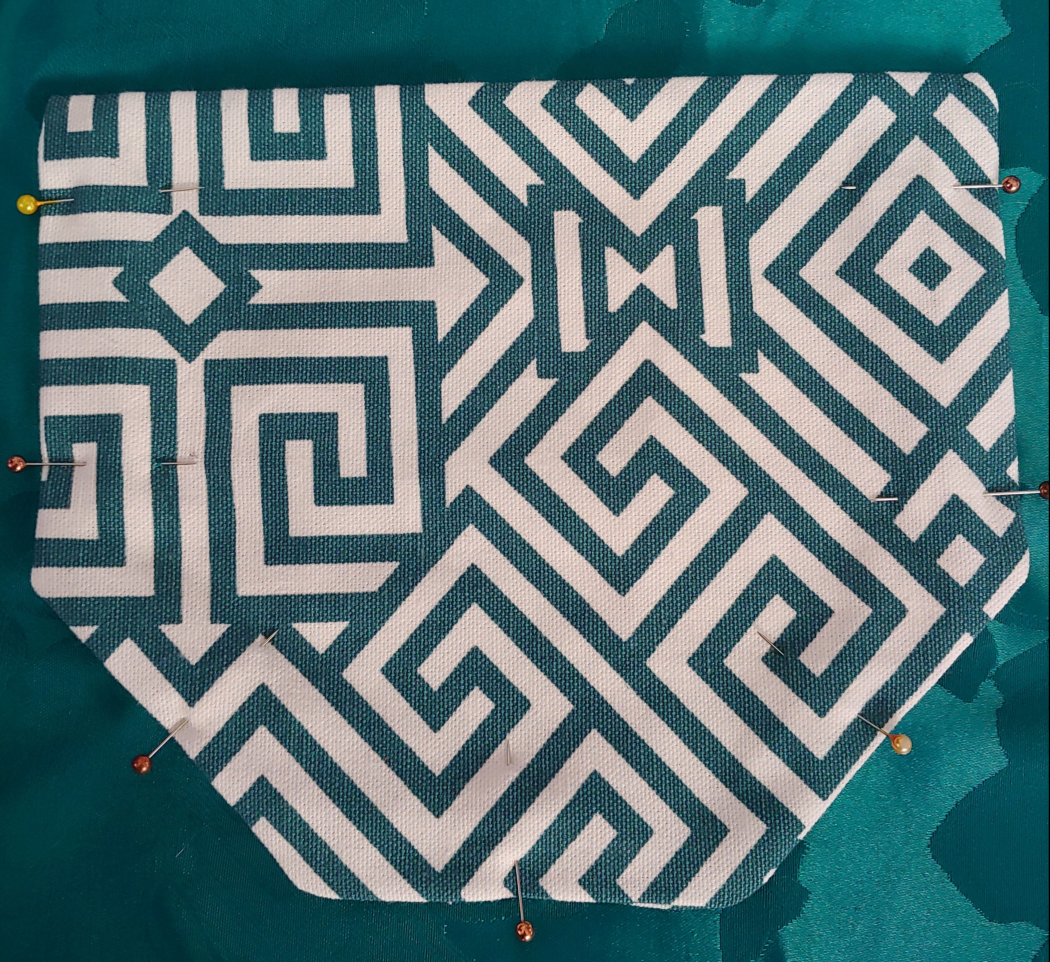 Once the fabric is cut it is time to flip it inside out so that the pretty sides are hidden, carefully line up all of your edges and pin them together.