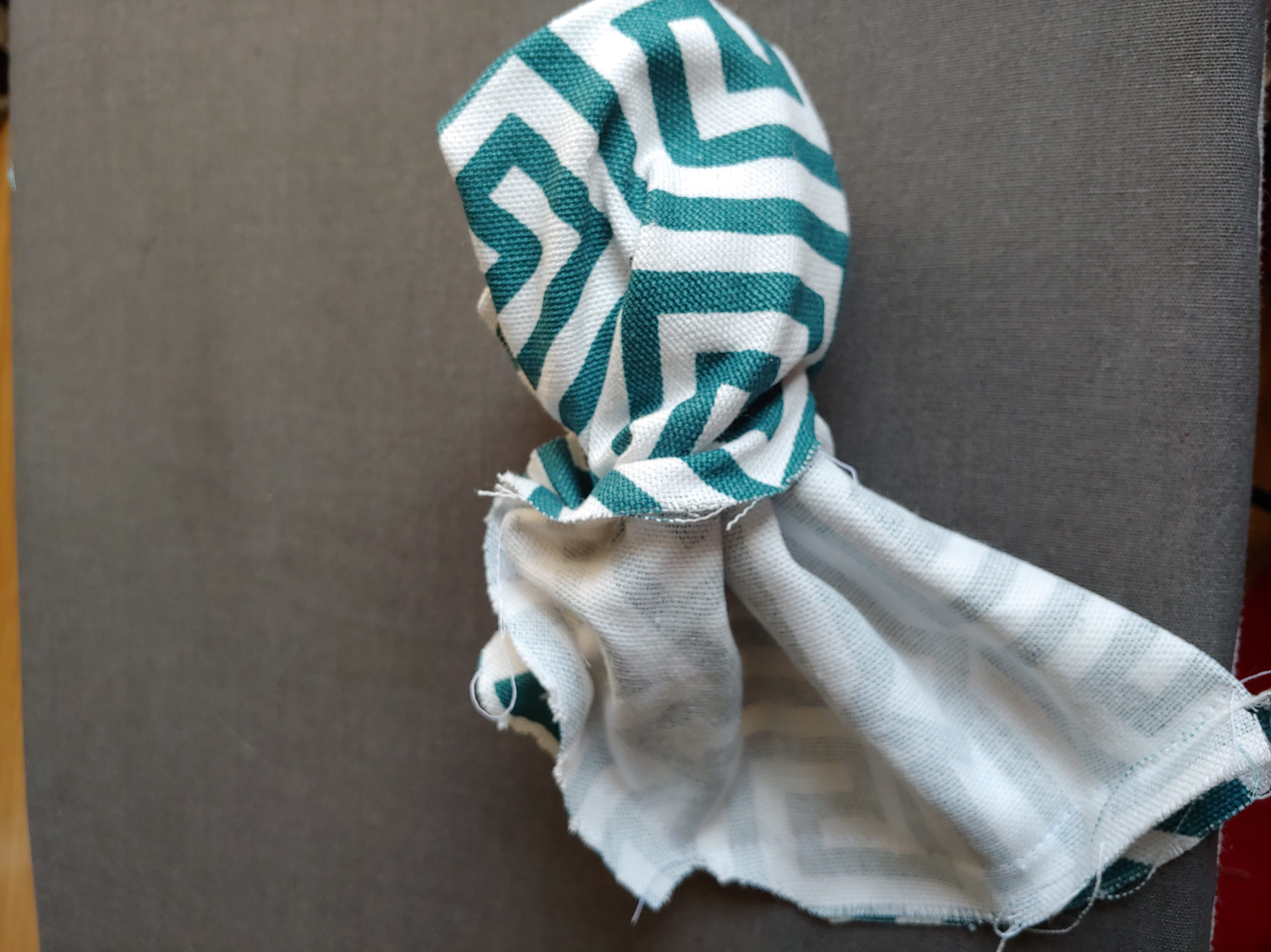Ready for the big reveal? Pull the pretty side of the pocket out through the gap that was left un-sewn, so that it is no longer inside out. You can use a pencil on the inside to push any of your corners out to nice crispy points and tuck the seam allowance back through the little gap at the bottom.