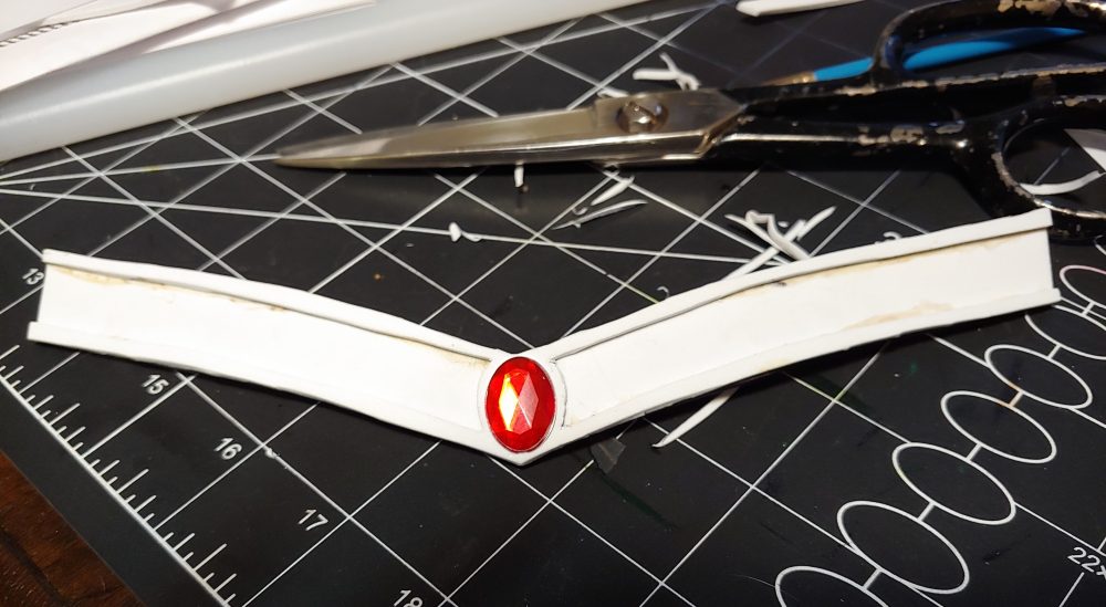 Past me had the foresight to save a template that I created for my first Senshi Tiara so I turned it into a .pdf pattern that can be printed off to make your own. Make sure you print it scaled to 100%, then go on ahead and cut it out. If you have a larger head you will need to lengthen the ends a little bit.