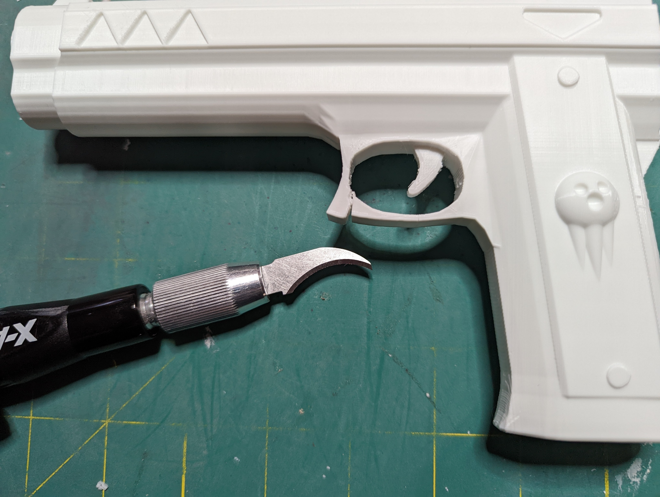 First, you will need to use an Exacto or craft knife to clean away any support material or print spaghetti that prevents you from fitting the broken piece back into its proper position.