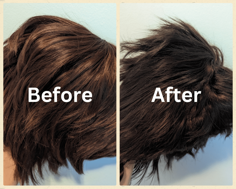 At this point, your wig is going to be a soaked and tangled mess. Let it dry hanging in the bucket or over a sink before any attempts to detangle. Let the forbidden soup cool down before you dump it.